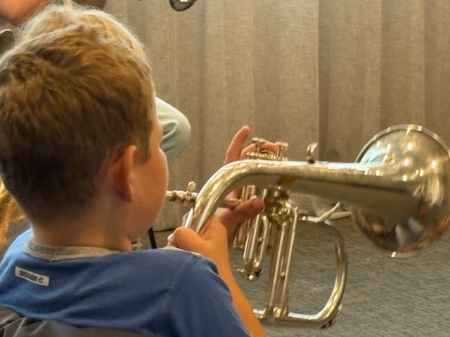Jaarlijks terugkerend is het scholenproject, waarbij we aan groep 5 van de basisscholen in Biddinghuizen alle fanfare-instrumenten mogen introduceren. Dat wil zeggen; koperinstrumenten zoals de trompet en de bugel, de saxofoons en het slagwerk.